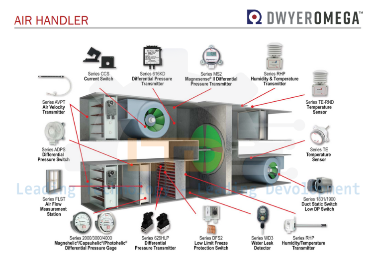 Giải pháp tổng thể: Dwyer cung cấp gần như tất cả các loại cảm biến và thiết bị đo lường cần thiết cho một hệ thống AIR HANDLER, giúp các nhà thiết kế và lắp đặt dễ dàng tìm được các giải pháp đồng bộ từ một nhà cung cấp.